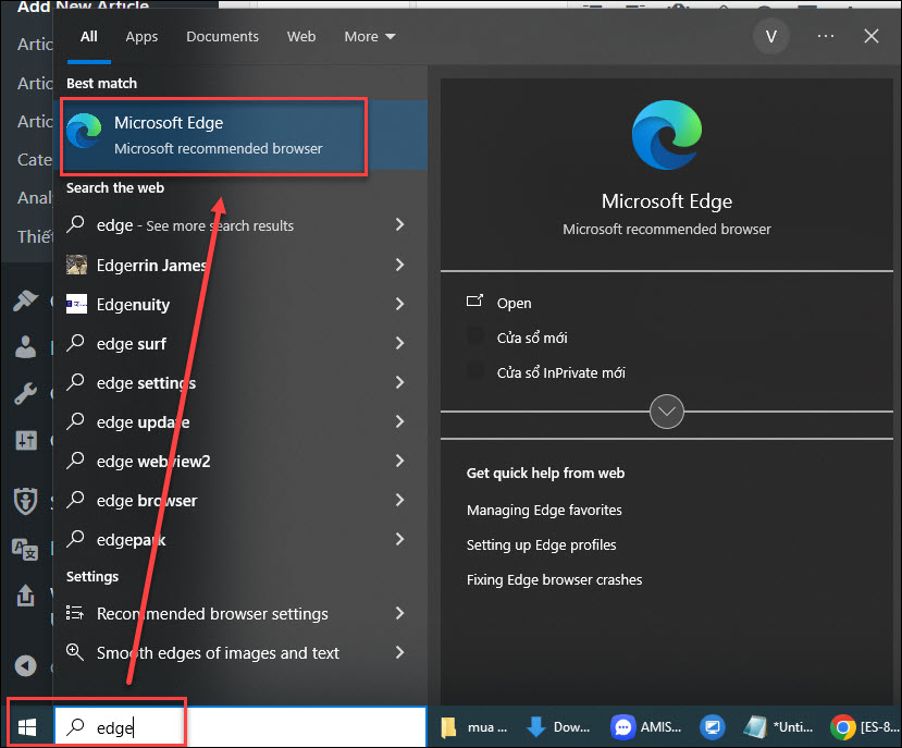 Bước 5: Đóng và mở lại trình duyệt Edge để áp dụng thay đổi.