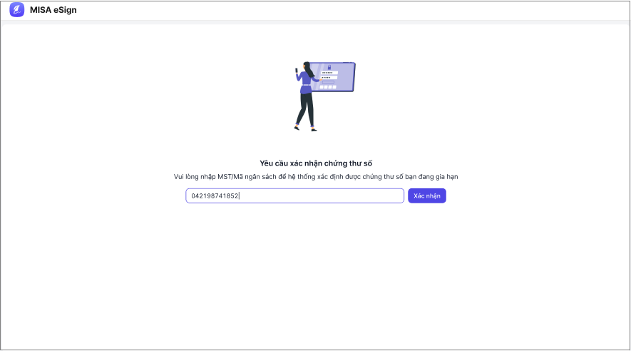Lưu ý: Chỉ áp dụng cho các loại chứng thư số Cá nhân/Tổ chức/Cá nhân thuộc tổ chức (Người đại diện) thực hiện theo luồng này. Còn các loại khác, vui lòng liên hệ NVKD MISA để gia hạn.