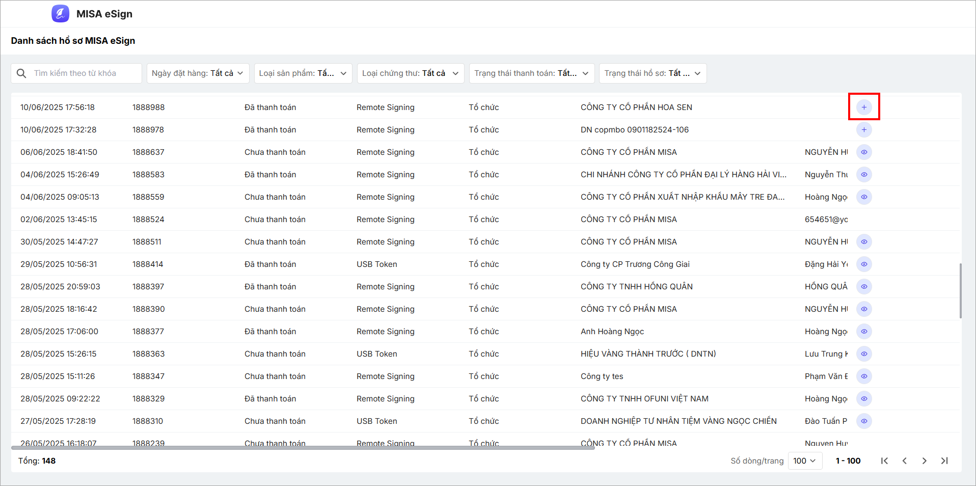 Khi đó hệ thống sẽ điều hướng sang màn hình danh sách hồ sơ trên MISA eSign.