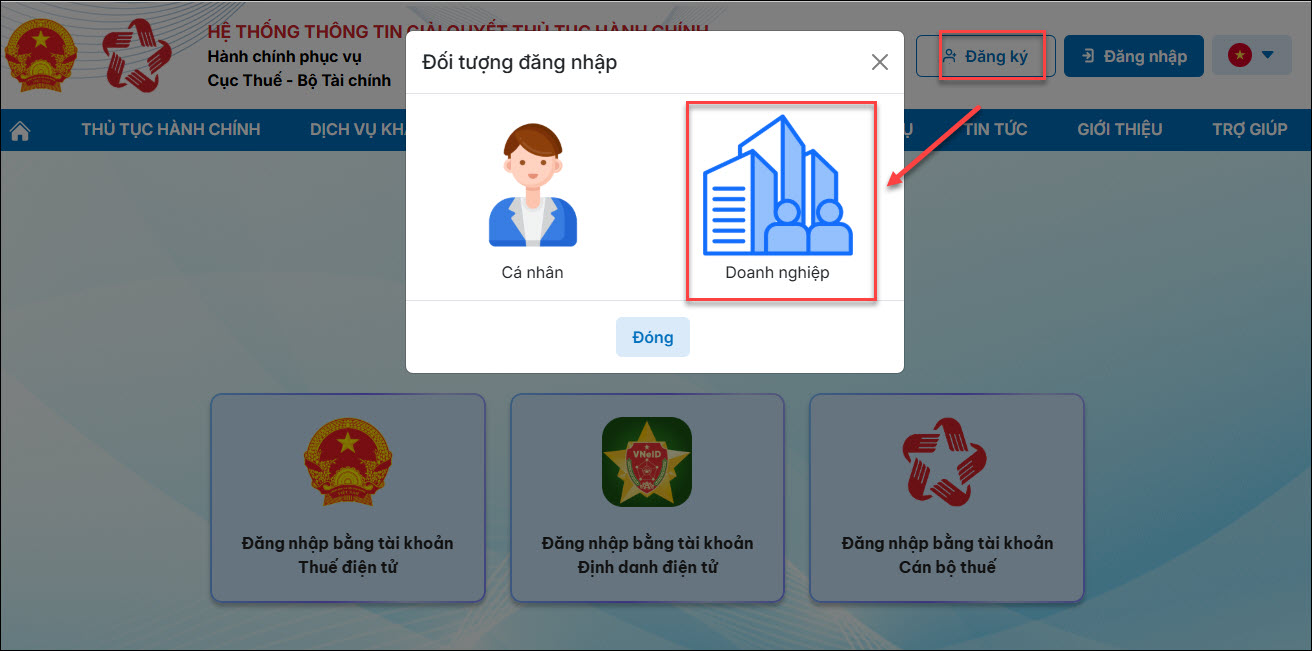 Cách 2: Đăng ký tài khoản trực tiếp trên trang dichvucong.gdt.gov.vn