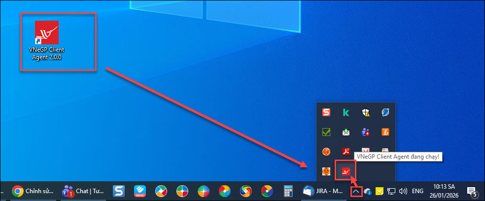 Sau khi cài đặt thành công, người dùng sẽ nhìn thấy biểu tượng của eGP – Agent ở ngoài màn hình. Người dùng cần thực hiện: