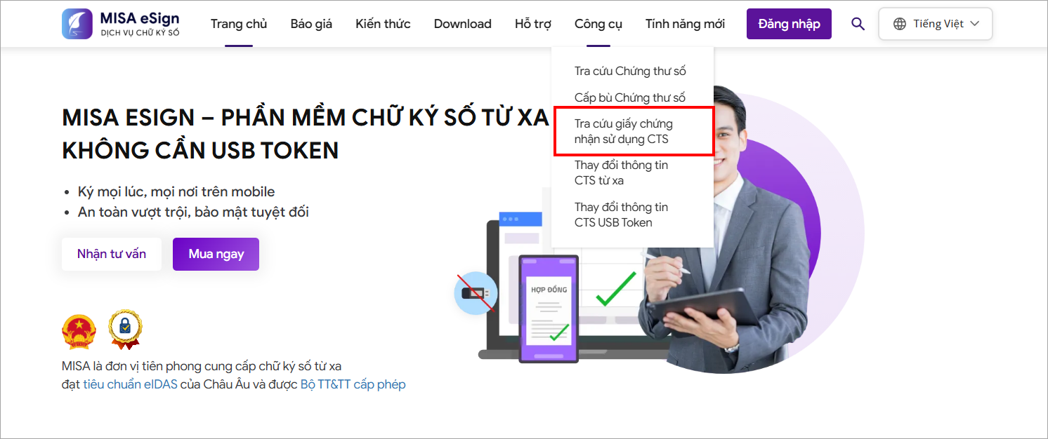 - Truy cập website: https://esign.misa.vn/