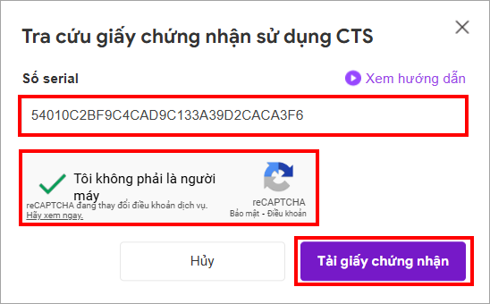 Lưu ý: Để lấy được số Serial của CTS, anh/chị có thể tham khảo hướng dẫn tại đây