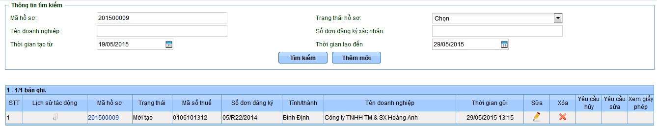 Bước 1: Thực hiện tìm kiếm hồ sơ doanh nghiệp cần gửi