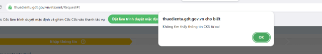 Biểu hiện: Khi đăng ký mã số thuế, tài khoản trên trang thuế điện tử (https://thuedientu.gdt.gov.vn) bằng chữ ký số từ xa, phần mềm cảnh báo “Không tìm thấy thông tin CKS từ xa”.
