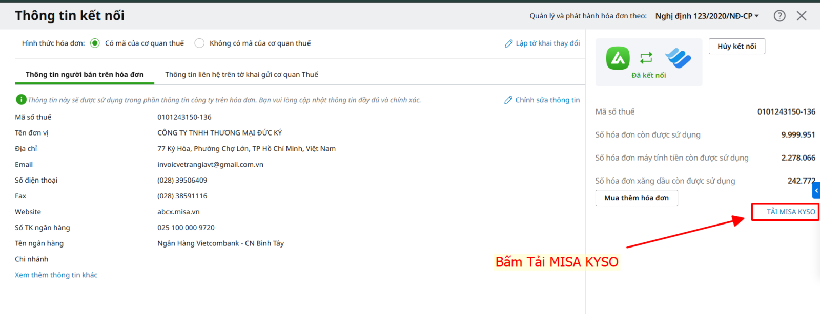 Bước 3: Tiến hành tải và cài công cụ MISA KYSO như hướng dẫn mục 2.2. Cài đặt công cụ MISA KYSO