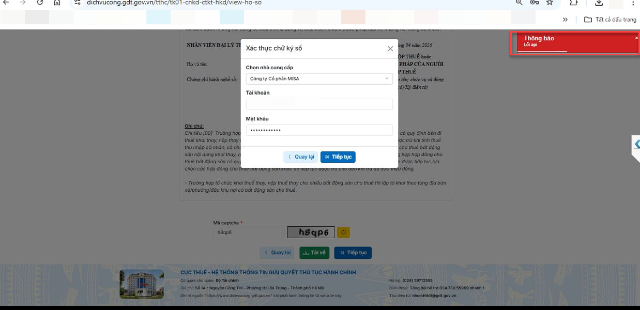 Bước 3: Tắt trình duyệt và mở lại, thực hiện ký số lại.