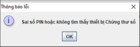 Khi thực hiện ký tờ khai, hệ thống báo lỗi “Sai số pin hoặc không tìm thấy thiết bị Chứng thư số”: