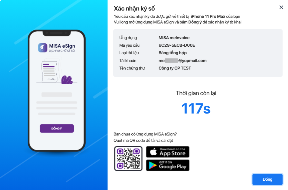Khi đó, hệ thống hiển thị cửa sổ yêu cầu đăng nhập tài khoản MISA eSign: