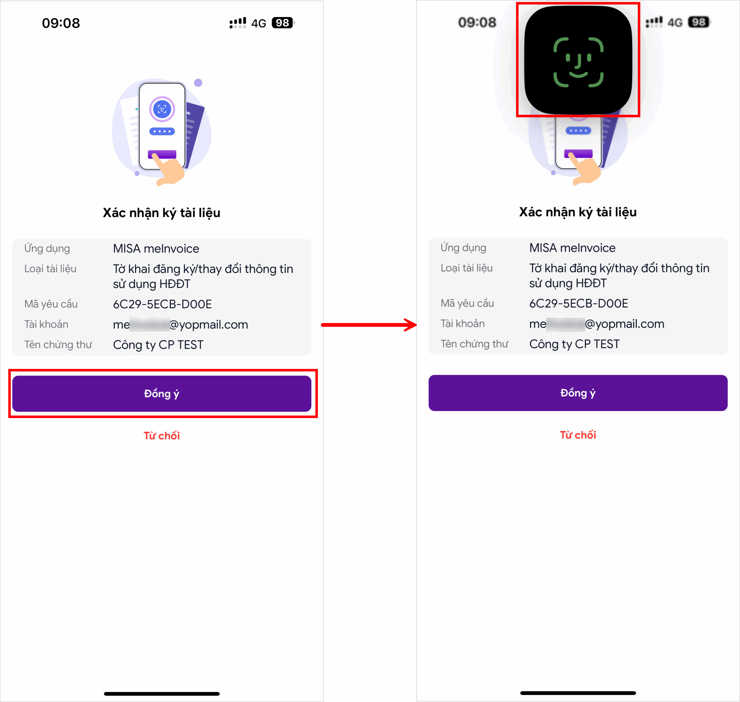 - Anh/chị thực hiện xác nhận trên thiết bị xác thực để ký số