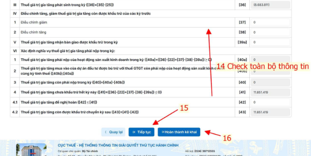 - Kiểm tra thông tin, nhấn Tiếp tục và Hoàn thành kê khai