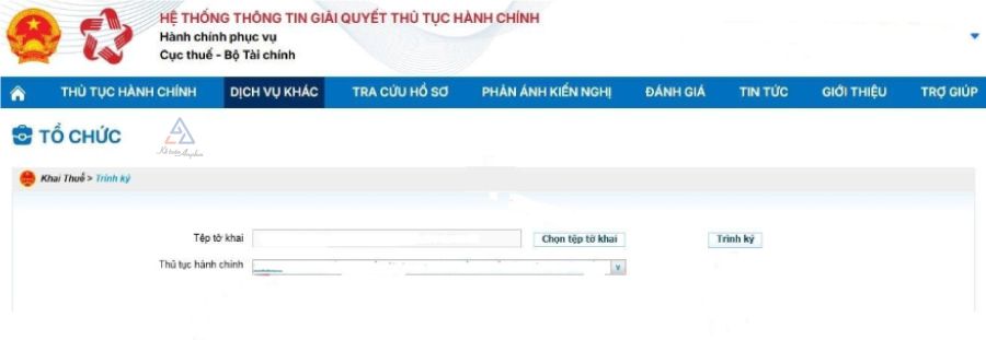Bước 4: Chọn “Tệp tờ khai” và “Thủ tục hành chính”, sau đó bấm “Trình ký” (bỏ qua bước này nếu chọn hình thức “Nộp XML”)