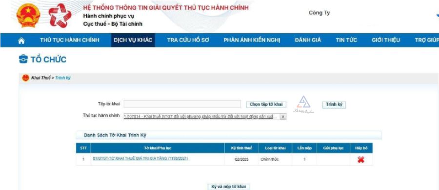 Màn hình hiển thị danh sách các tờ khai đã nộp, bạn kiểm tra lại và bấm chọn “Ký và nộp tờ khai” để hoàn tất thủ tục.