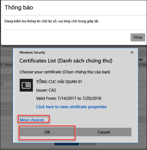 • Hệ thống sẽ tự động cập nhật chữ ký mới trong trường hợp NSD chỉ có một chữ ký số. Nếu có 2 chữ ký số trở lên hệ thống sẽ yêu cầu lựa chọn