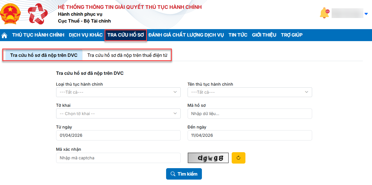 - Tra cứu hồ sơ đã nộp trên DVC: Áp dụng cho tờ khai nộp trực tiếp trên trang dichvucong.gdt.gov.vn, hoặc nộp trên trang thuedientu.gdt.gov.vn sau ngày 01/07/2025.